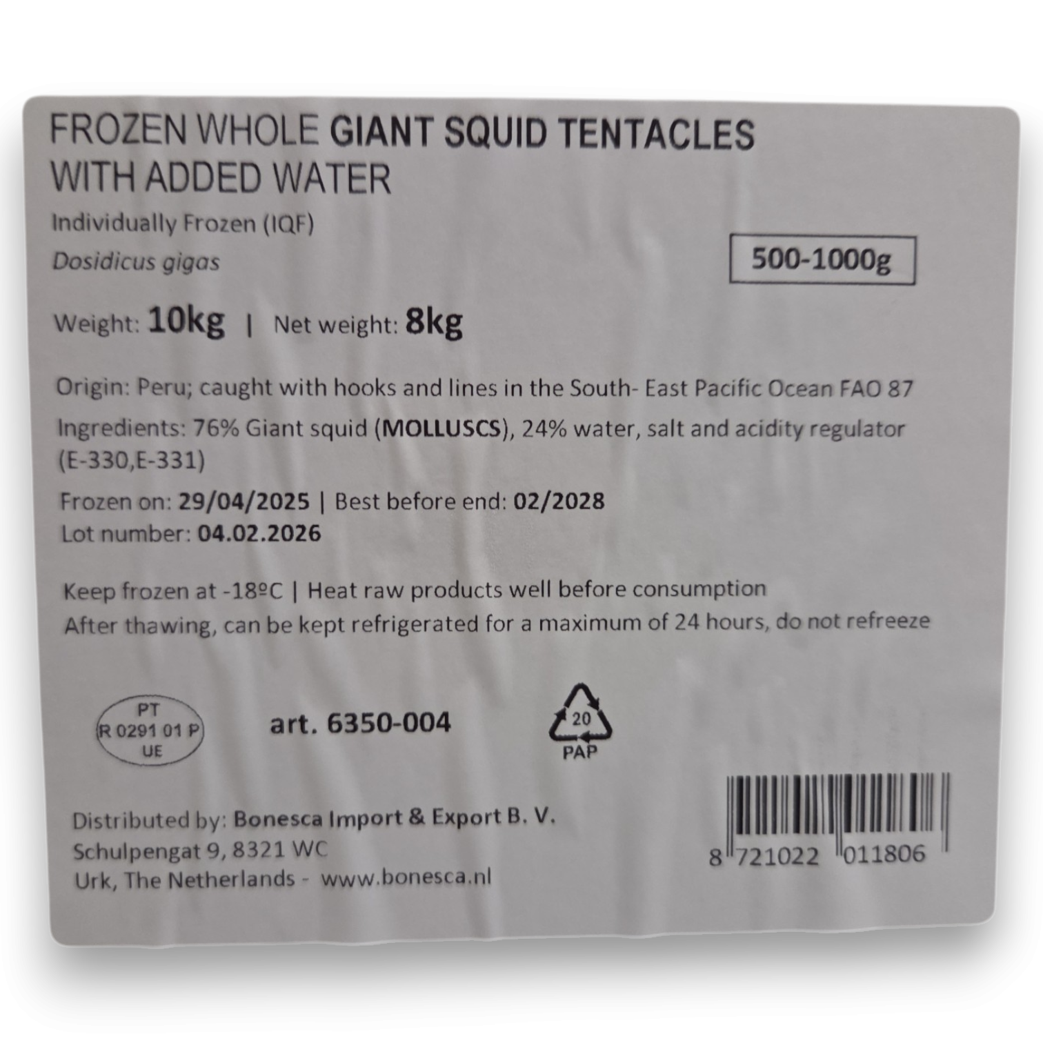 Giant Squid Tentacles 500-1000g IQF 1 x 10kg 20% -PT - Additional Information