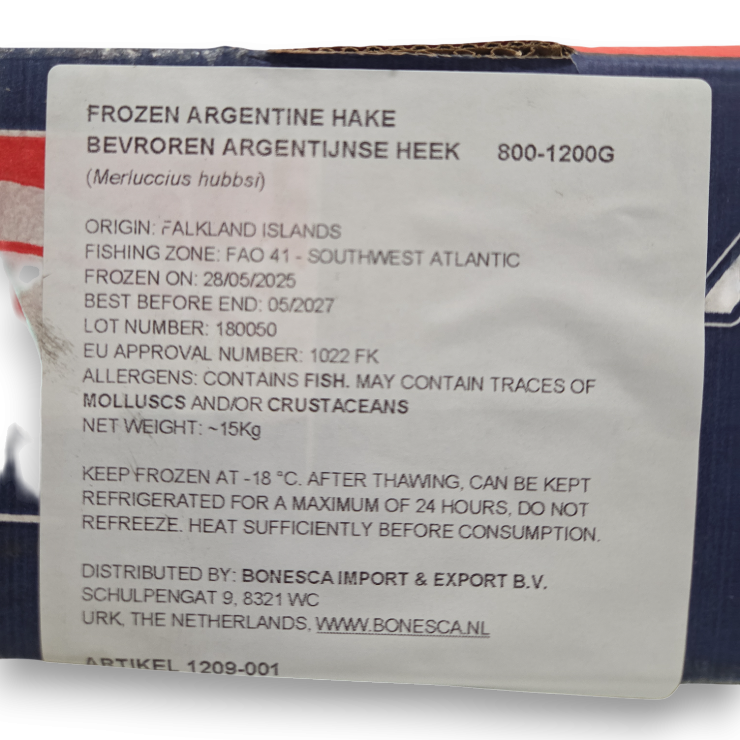 Article number 1209-001 Product Specification 0 Weight 15.00 Consumer Units per box 1 Per pallet 36 Soort Palet EUR Scientific name Merluccius hubbsi zoekcode 01MEH EAN Code Box No EAN Code Retail 0 Brand No Statistical code 03036619 Origin Spain BBD (Batch & Pallet Info) 05/28/2027 00:00:00 CU (Consumer Unit) Dimensions 0 SU (Sales unit) Dimensions 0 Common Names No Synonyms No - Reviews