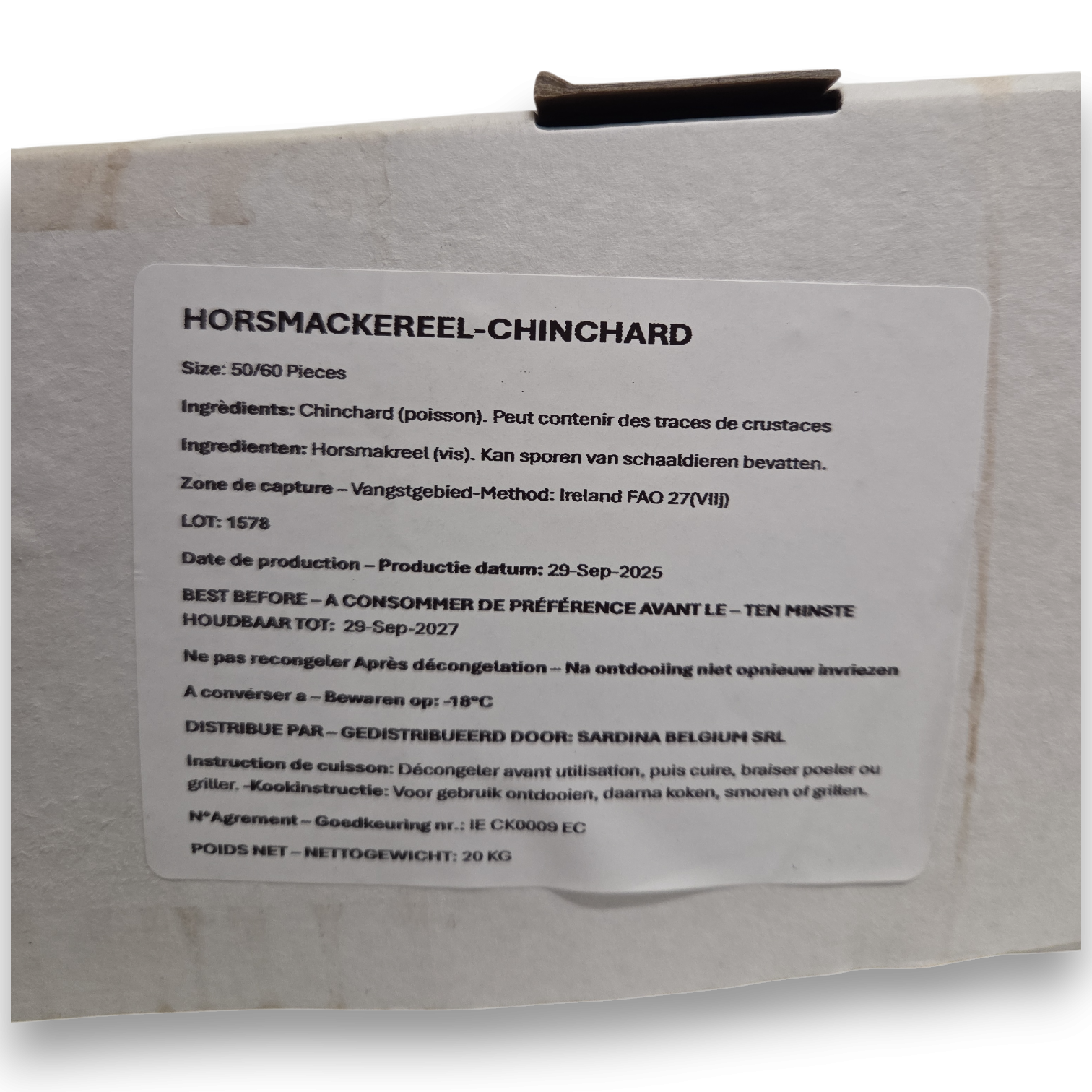 Article number 1259-001 Product Specification 0 Weight 20.00 Consumer Units per box Doos Per pallet 0 Soort Palet 0 Scientific name Trachurus Trachurus zoekcode 01TRT EAN Code Box No EAN Code Retail 0 Brand No Statistical code 03035510 Origin Ireland BBD (Batch & Pallet Info) 0 CU (Consumer Unit) Dimensions 0 SU (Sales unit) Dimensions 0 Common Names No Synonyms No - Reviews