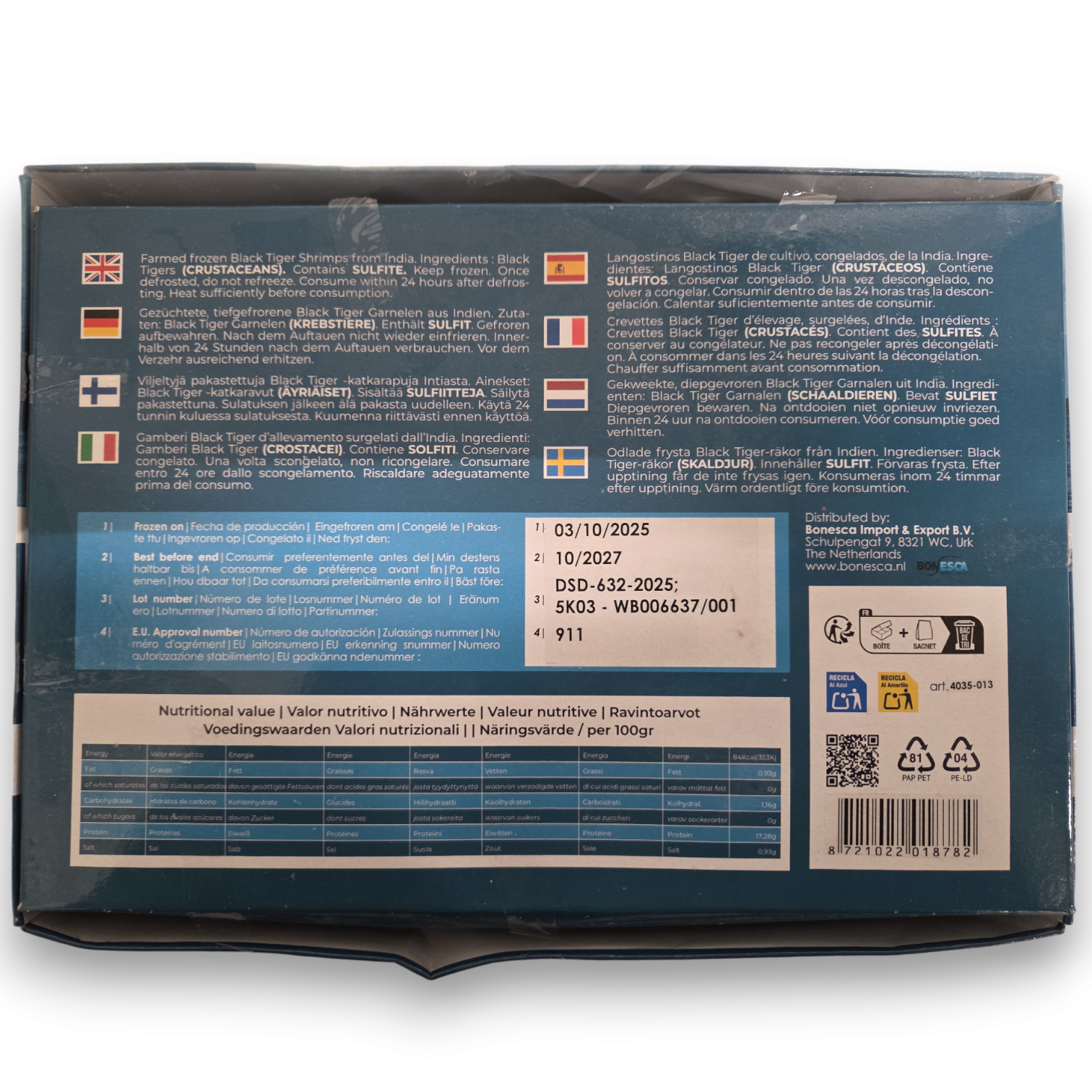 Jona Black Tiger HOSO 13/15 Semi IQF 10 x 1kg 25% -IN - Additional Information
