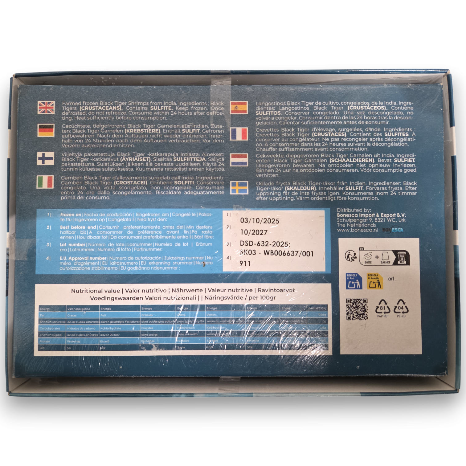 Jona Black Tiger HOSO 8/12 Semi IQF 10 x 1kg 25% -IN - Additional Information