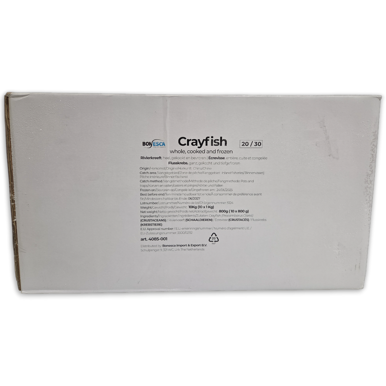 Jona Cooked Crayfish WR 20/30 Semi-IQF 10 x 1kg 20%-CN - Additional Information