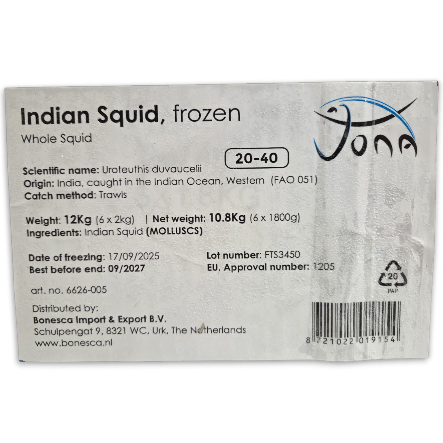 Jona Indian Squid WR Cleaned 20/40 IQF 6 x 2kg 10% -IN - Additional Information